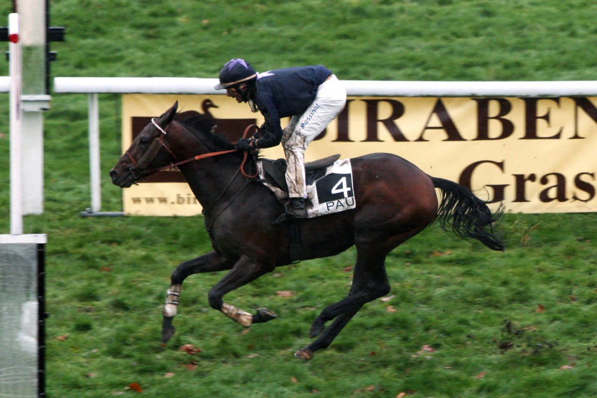 Leon Malpic, le frère de Louis Malpic, lors de sa victoire dans l'édition 2016 du Prix Roger de Vazelhes, sur ce même hippodrome de Pau