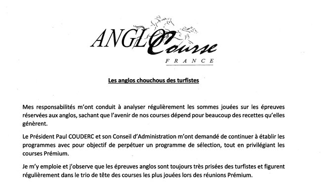 Billet d'humeur de Christian Bellot : les anglos chouchous des turfistes