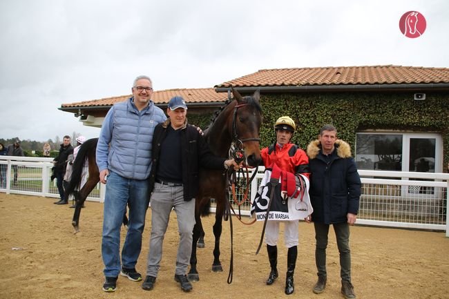 Voici désormais le tour de Fira, une magnifique pouliche, classée 2e du Grand Show Anglo. Mathieu Daguzan-Garros a donc associé ses 2 fils Raphaël et Frédéric dans l'élevage de la pouliche de Diamond Green, un étalon très confirmé qui faisait la monte en 2016 au Haras des Granges avant de faire 2 saisons au Haras du Lion puis de s'installer au Haras des Etincelles chez Olivia Saelens en 2020. Son jockey Alexandre Gavilan savait très bien ce qu'il avait dans les mains quand il a pris l'avantage dès l'entrée de la ligne d'en face avant de filer au poteau, soutenant uniquement aux bras sa partenaire nécessairement tenue en haute estime par son entraineur Didier Guillemin, pour qu'il l'ait proposé à Pierre Pilarski, un nouveau propriétaire important. Ce dernier avait récupéré Genmoss sous sa casaque après les 3 premiers succès de la fille de Gentlewave. Cette fois, la bannière rouge et jaune a brillé dès le début de l'histoire.