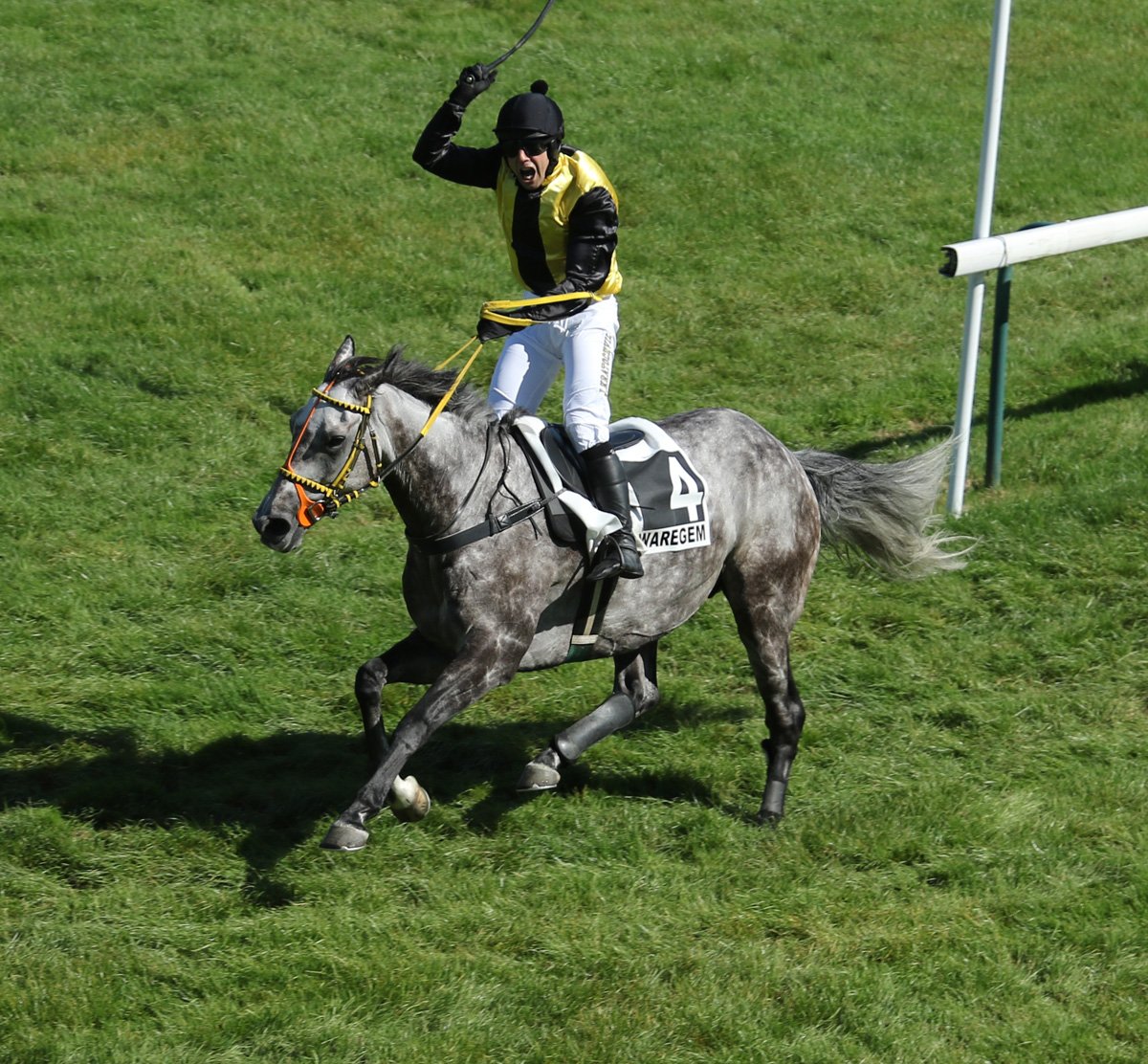 Belle journée pour la casaque jaune et noire de la scuderia Aichner. Premier avec Le Petit Nice sur les haies, deuxième avec Mandinko et troisième dans le Gd Steeple avec Volkov Jelois