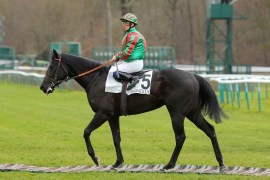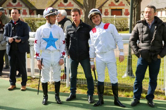 Chopsoave & Ioritz Mendizabal avec la casaque noir et jaune pour l'entraînement de M.Nicolas Caullery