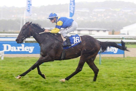 Irish Kaldoun a brillé sur une piste Deauvillaise gorgée d'eau & sous une pluie battante avec Sylvain Ruis
