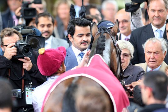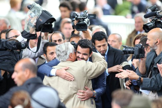 L'éleveur et le propriétaire tombent dans les bras l'un de l'autre. Alec Head et Sheikh Joaan Al-Thani poursuivent leur rêve et leur pari.