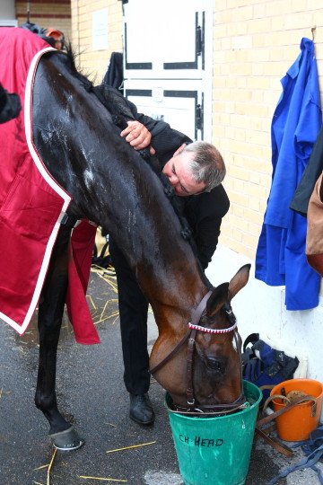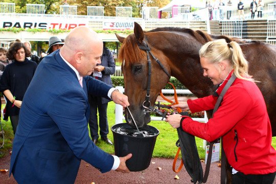 "Capitaine" s'occupe bien de son trésor ! Après une neuvième victoire, et un sixième groupe I, il faut bien s'hydrater un peu !