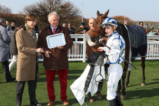 Daupin de Childa, avec Roxanne, en 2013, Pia Brandt et Maxime Guyon peuvent poser pour la photo du Prix Rose de Mai (L) 2016; avec l'entourage de l'invaincue Camprock.
