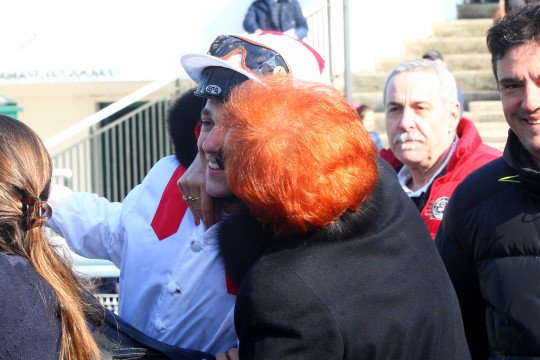 Ca vaut bien une caresse pour l'élève de Fabrice Vermeulen qui venait juste de passer sous cette casaque après son bel hiver cagnois.