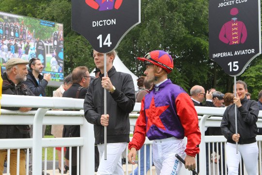 Le défilé de présentation des jockeys avant qu'ils se mettent en selle pour le Prix du Jockey Club 2016