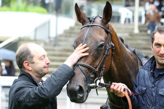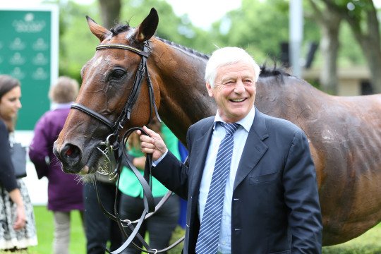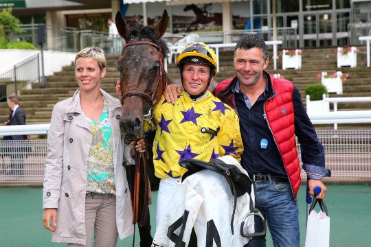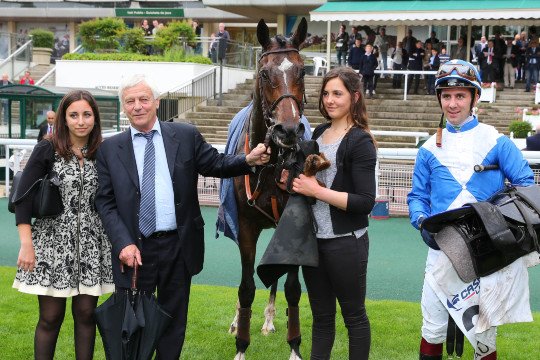 M.Dominique Bressou est fier de son pensionnaire Kalifko (fils de montmartre) qui pour sa 4ème course s'adjuge le Prix Aguado Gr.3