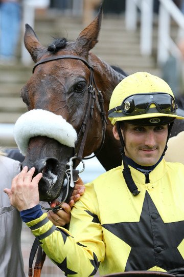 Amazone du Lemo (fille de Roli Abi) s'offre une victoire à Auteuil pour son 1er handicap - pour le bonheur de son jockey Ludovic Solignac et son entraîneur M.Armel Leclerc