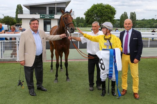 Tzar's Dancer & Wilfrid Denuault enlèvent le Prix Rigoletto Listed - Entraînement de Mrs E&G Lennders - ici aux côtés de Mme De Saint-Seine (éleveur et co-propriéatire)