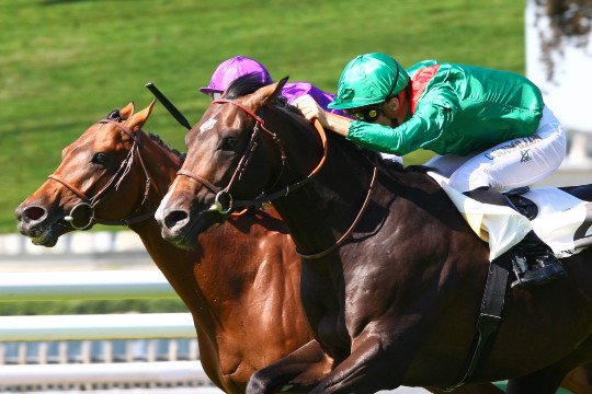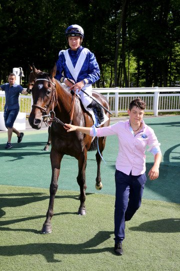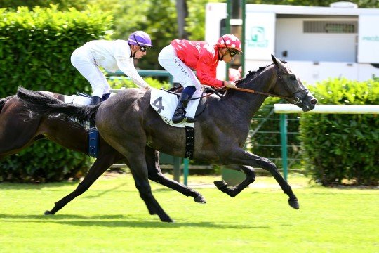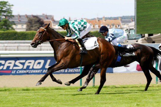 Takadiyr ce fils de Manduro conserve une courte tête au passage du poteau avec Christophe Soumillon - Entraînement M.Jean-Claude Rouget
