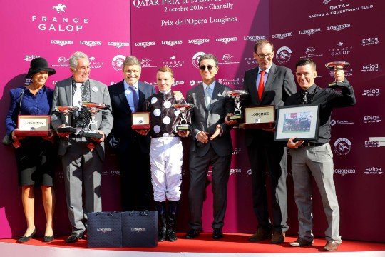 Les heureux co-propriétaires Mrs Tabor & Smith de Found (de gauche à droite) - M.Mickaël Tabor peut-être aux anges, il est co-propriétaire des 3 chevaux de tête de cet Arc 2016