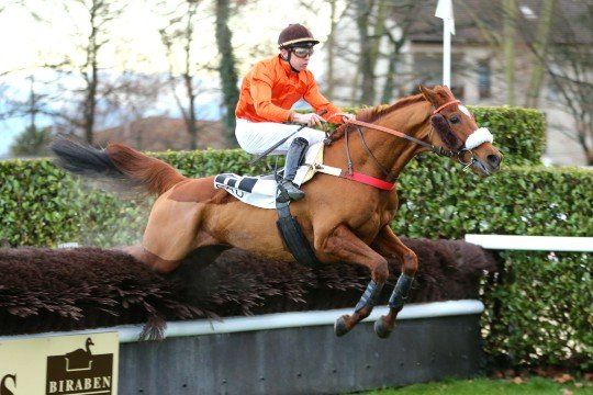 Casatchok signe sa 1ère victoire en haie pour sa 3ème tentative, ici sous la selle de Thomas Beaurain et l'entraînement de Mme Isabelle Pacault