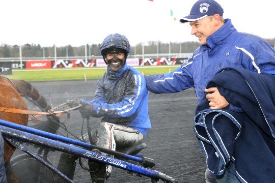 L'entraîneur (à gauche sur la photo) M.Thierry Duvaldestin aux côtés de son pensionnaire Briac Dark