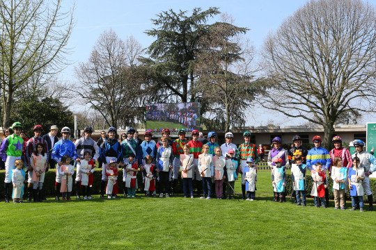 Les jockeys bien accompagnés par les enfants pour le Prix Lutteur III - Listed