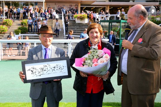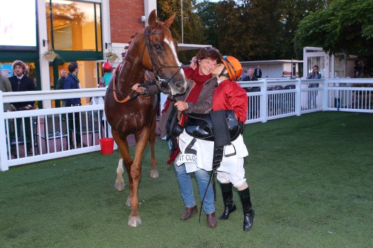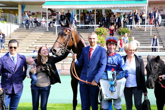 Il offre à son entraineur, Carina Fay ici avec son jeune bébé, sa 1ère victoire de Groupe tout comme pour son jockey Benjamin Gelhay !