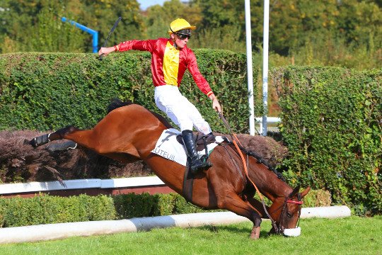 Grosse glissade pour Etoile Moriviere, qui se relèvera sans mal, tout comme son jockey Baptiste Meme