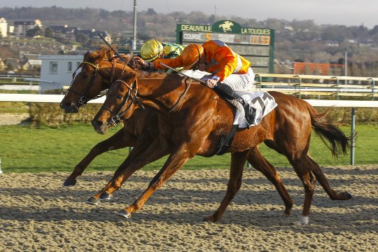 Frank Panicucci se transcende avec ce froid vivifiant. Le Nîmois d'origine remporte 3 courses sur les 2 journées les plus froides de ces derniers jours. En photo, en selle sur Anpak, lui offrant un doublé, vendredi, à Deauville.