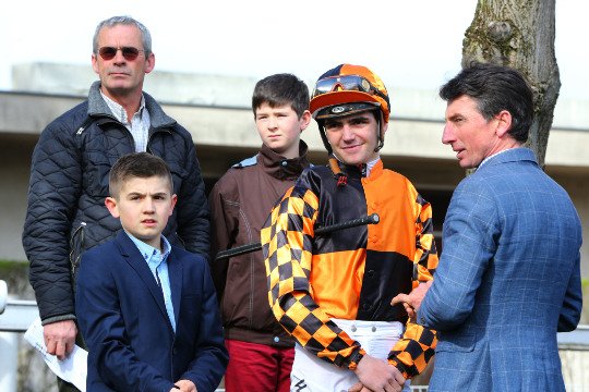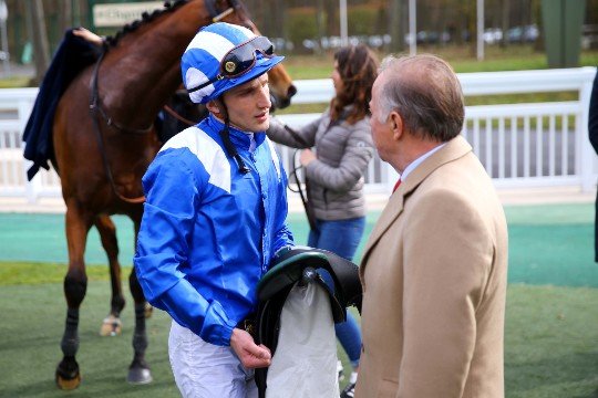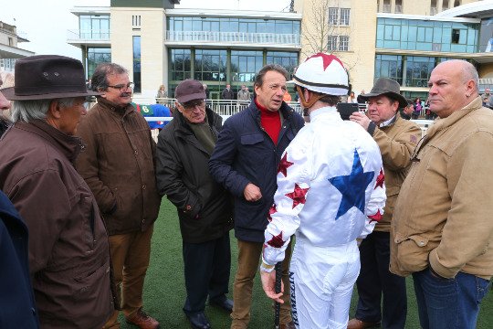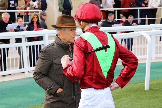 Vincent Cheminaud heureux de la sortie de Forza Capitano (Captain Marvelous) dans le Prix Anabaa. George Kern, son propriétaire, aimerait bien le voir courir prochainement à Lingfield