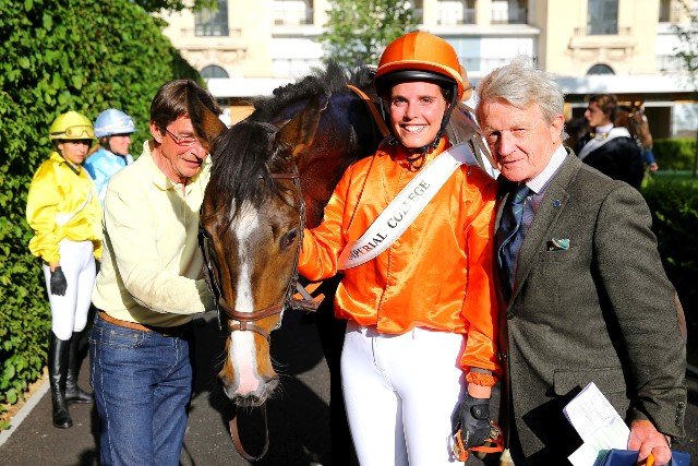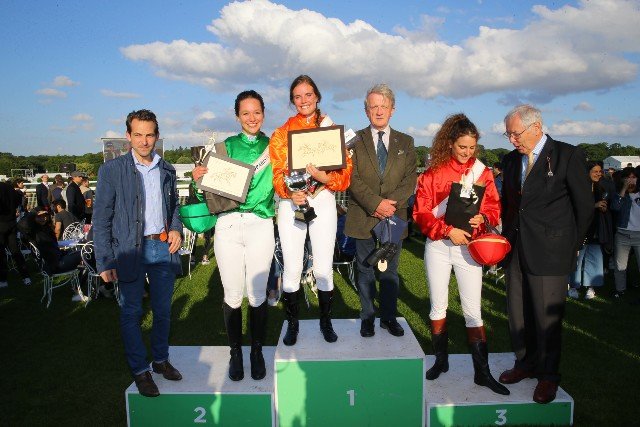 Le sourire de la gagnante, Pénélope Le Ménestrel, Shauqat et Gérard de Chevigny, Président du Club des Gentlemen Riders
