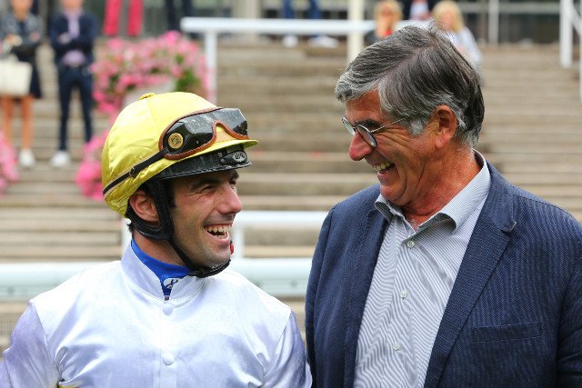 Ces 2 là ne sont pas peu fier de leur course, et pour cause ! Geoffrey Rey & Marcel Rolland remportent le Finot Poulains (Listed), avec Sangennaro (Poliglotte)