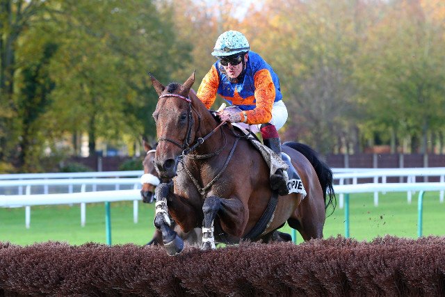 Un autre gris quasi blanc, Celtior (Racinger), samedi, à Auteuil. Il a permit à Mathéo Viel de faire sa rentrée, après pratiquement 3 mois sur le banc, suite à sa blessure aux vertèbres.