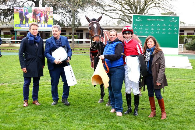 Dans le Prix d'Indy (Gr.3), Grand Messe offre une première victoire de groupe à Anne-Sophie Pacault.