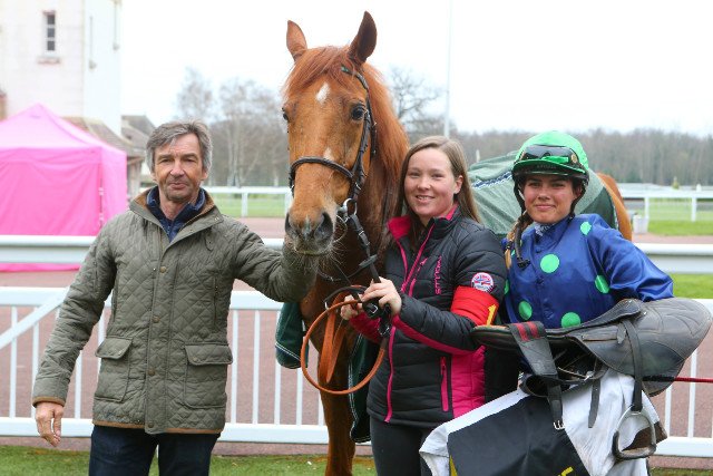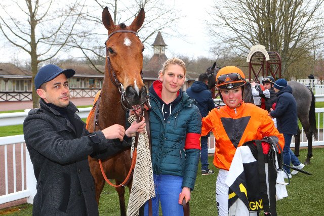 Tracy Menuet, seule cavalière dans la course réservée aux Gentlemen-Riders et Cavalières. Chika Dream (Danehill Dancer) lui offre son 1er gagnant de l'année