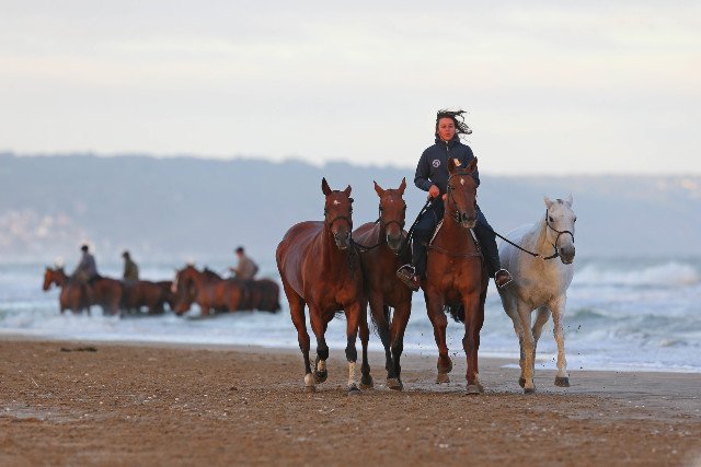 Le meeting de Deauville c'est aussi cela ! La possibilité de voir une multitude de chevaux sur la plage, le matin, dont les entraînements des chevaux de polo se produisant l'après-midi, à l'intérieur de l'hippodrome