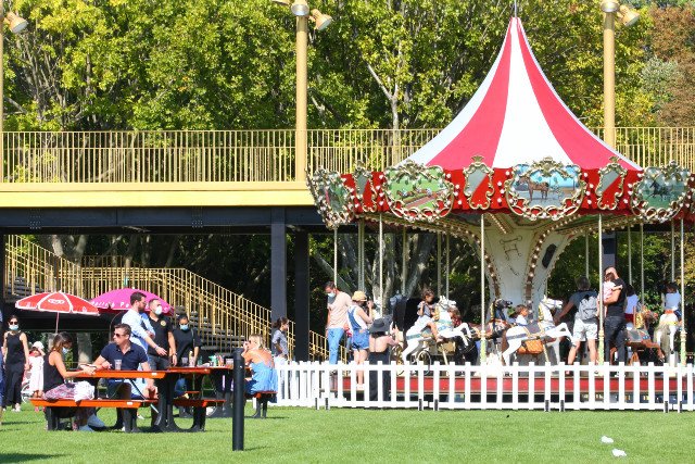 Les petits jockeys en herbe bénéficient, à Longchamp, du manège, façon d'antan, alors que les parents pique-niquent à côté