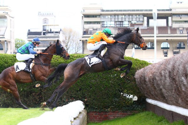 Samedi à Auteuil : Magnifique saut de Ajas (No Risk At All) pour franchir le Rail Ditch and Fence et filer au poteau du Prix Murat, Gr. 2