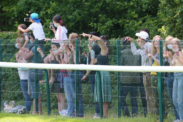Le grand public qui ne pouvait pas être sur l'hippodrome, se presse le long du grillage afin d'observer les courses