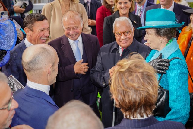 Dimanche : on termine avec une photo de légende. Olivier Peslier, Frankie Dettori, Freddy Head, Yves Saint-Martin et la Princesse Anne