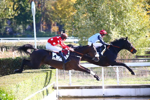 Samedi à Auteuil: Eden Conti (premier plan) et Lateranito sautent la rivière des tribunes comme des chats
