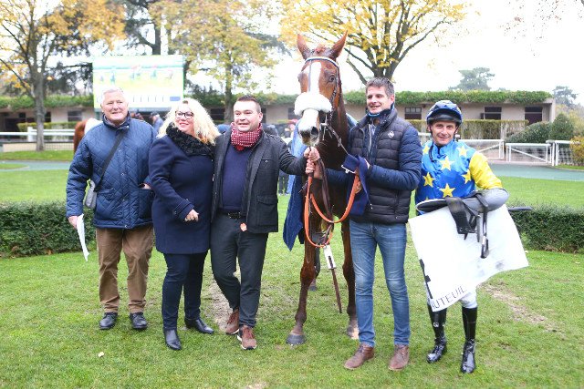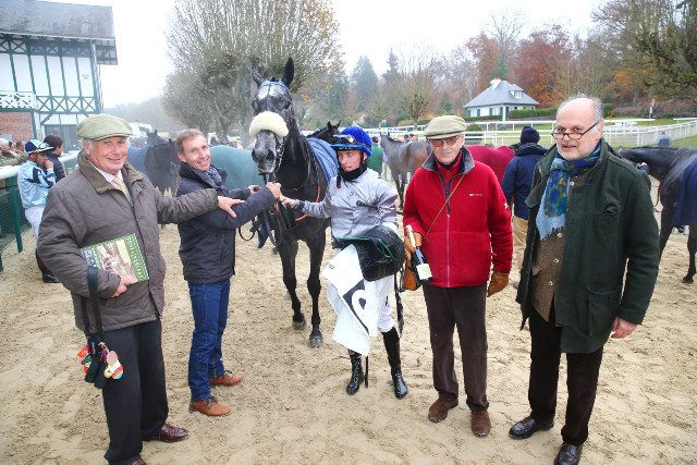 Samedi à Auteuil : première victoire à Auteuil pour le jeune entraîneur Mathias Solier (à droite à côté d'Olivier Jouin) grâce à Ine Anjou