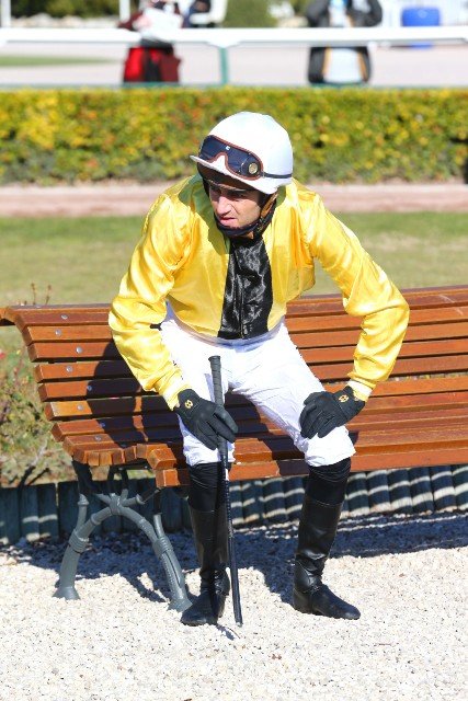 Lundi à Cagnes : petite pause sur le banc pour Christophe Soumillon