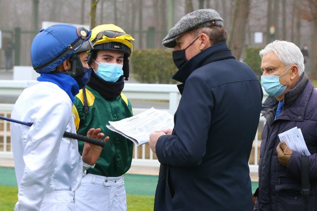 Vendredi à Chantilly : le maitre André Fabre donne ses consignes à Adrian Le Lay Martin et Rafael Pehu