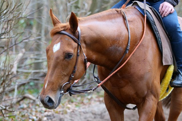 Mardi à Chantilly : le délicat mais doué Gaidar débute victorieusement, après avoir mis un coup de tête à son jockey Hugo Besnier avant la course, son breeches en garde les traces