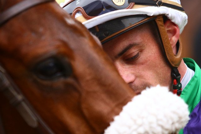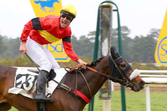 Lundi à Chantilly : Christophe Soumillon très content de s'imposer pour la dernière course de la carrière du sympathique Nabunga