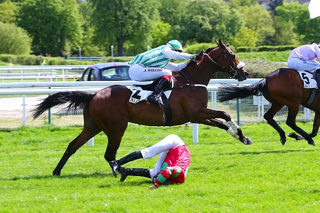 Mardi à Fontainebleau : quelques mètres après le poteau, la lauréat a eu peur du passage de route, éjectant son jockey