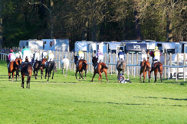 Mardi à Fontainebleau : et fauchant également la pouliche de Théo Bachelot. Heureusement pas de mal pour hommes et chevaux