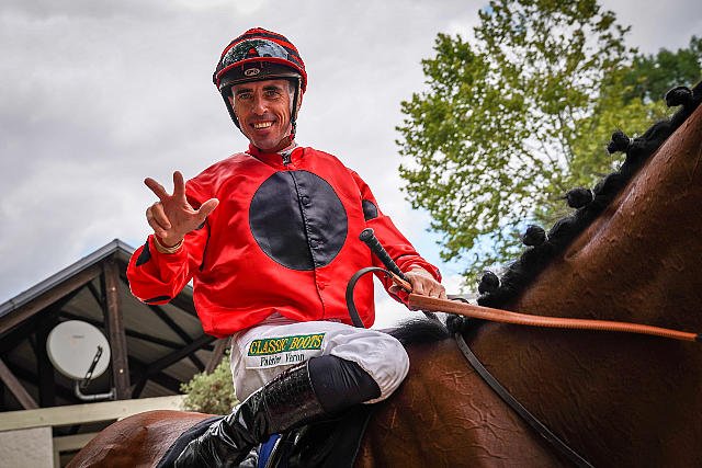 Désormais installé dans le Sud-Ouest, basé à La Teste, Fabrice Véron signe un coup de 3 à Tarbes, ici en selle sur Schwanensee.