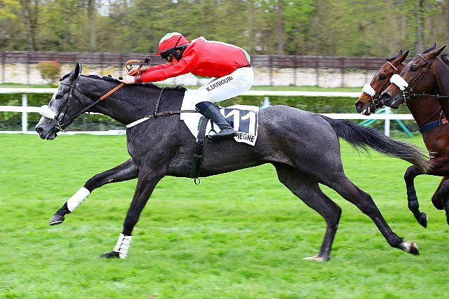 Lundi à Compiègne : Côte Fleurie (casaque verte) s'est montrée à l'aise sur la terre pour s'adjuger le cross du jour