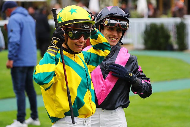 Dimanche à ParisLongchamp : le sourire aux lèvres de Marie Vélon et Ambre Molins avant de se mettre en selle