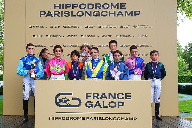 Dimanche à ParisLongchamp : la remise des trophées aux jeunes jockeys des courses de poneys.