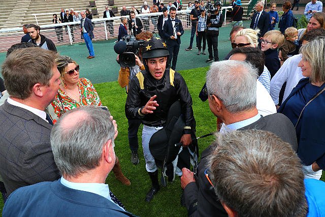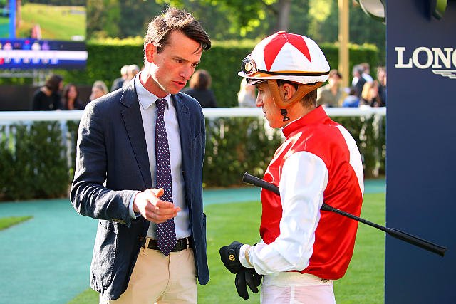 Jeudi à Paris Longchamp : Christophe Soumillon écoute les ordres de Tim Donworth.