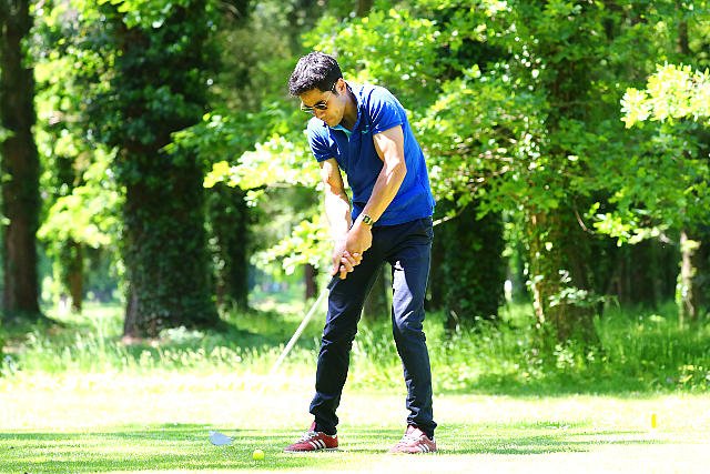 Mercredi à Lamorlaye : Felix de Gils en pleine concentration au tournoi de Golf de l'Association des Jockeys.