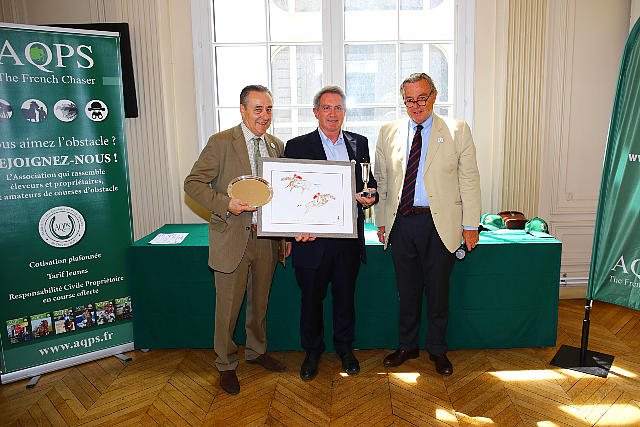 Samedi à Auteuil : remise du trophées annuels des éleveurs AQPS. Ici Nicolas de Lageneste pour les victoires de son champion Il Est Français