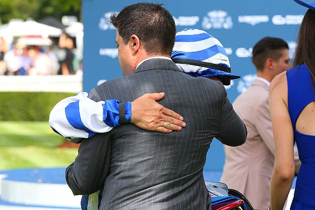 Dimanche à Chantilly : Christopher Head prend dans ses bras Aurélien Lemaitre après leur fabuleuse victoire