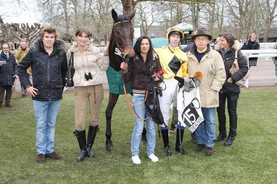 Ilhabella, soeur de Vahorimix, termine sa carrière de course en France sur une belle victoire, ce qui ravit David Smaga et Louis-Philippe Beuzelin